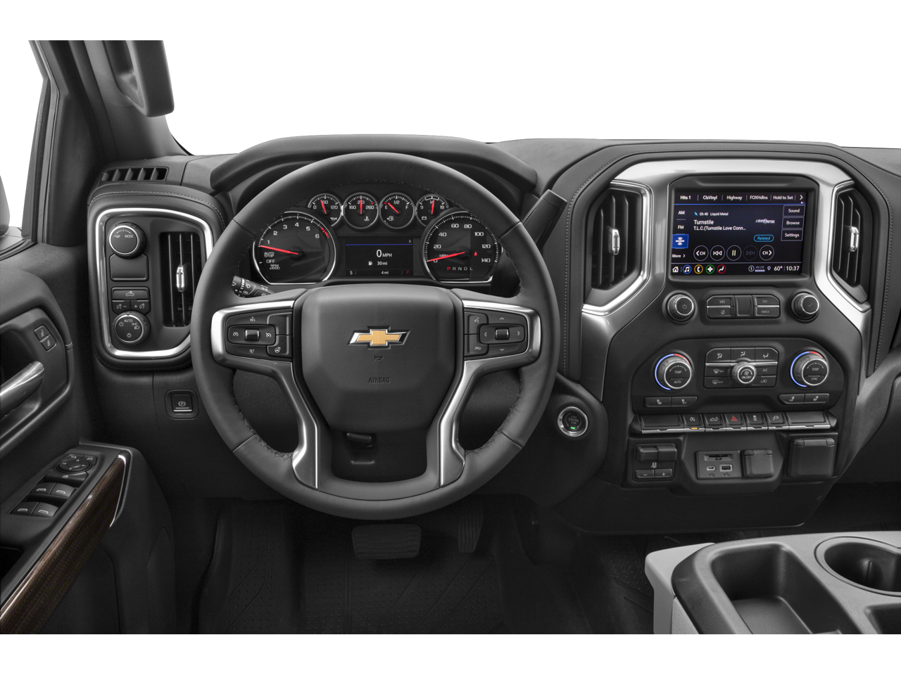This Silverado 1500 LTD is equipped with a touchscreen infotainment system that supports Apple CarPlay, Android Auto, and a mobile hotspot. The physical knobs and buttons make interacting with the system painless, and we appreciated the screen's prompt responses to our touch inputs.
